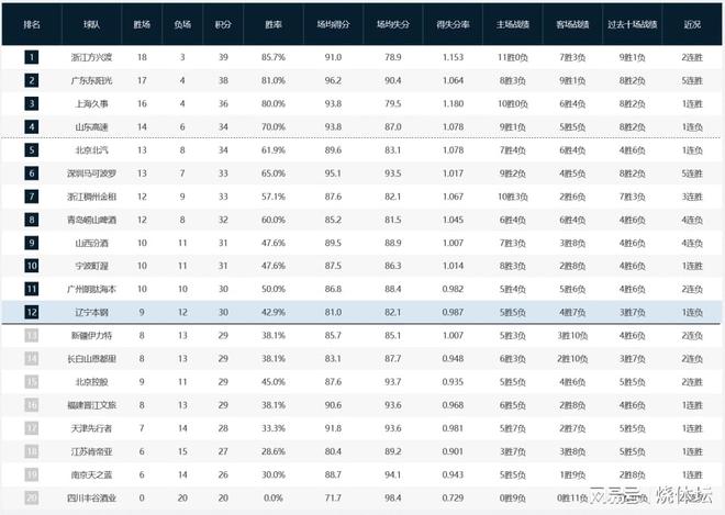 至此,宁波男篮终结连败及时止损,总成绩提升为10胜11负,目前积31分回到季后赛区域。辽宁男篮迎来本赛季第12场失利,本赛季综合战绩相对低迷,目前排名下滑到第12名。