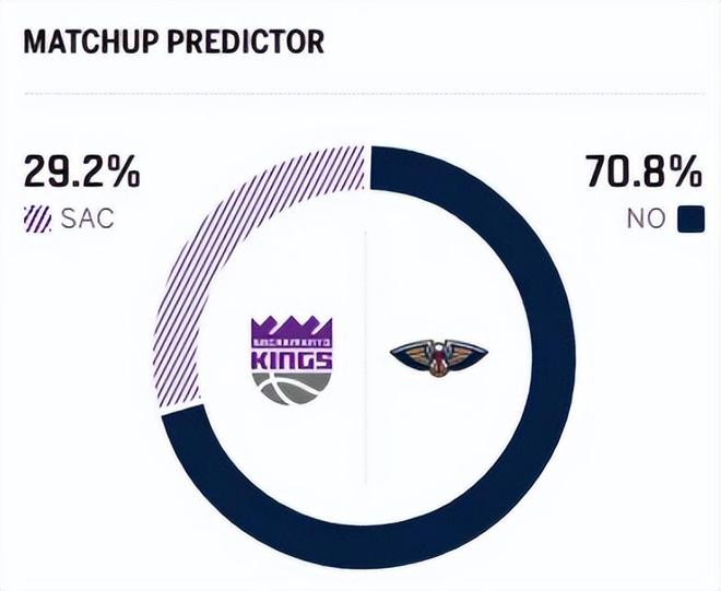 赛前,美媒ESPN对本场比赛进行了预测,鹈鹕胜率高达70.8% ,国王胜率仅有29.2% ,差距非常明显。