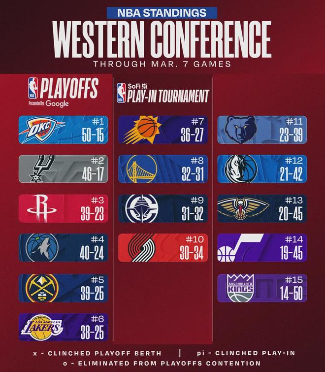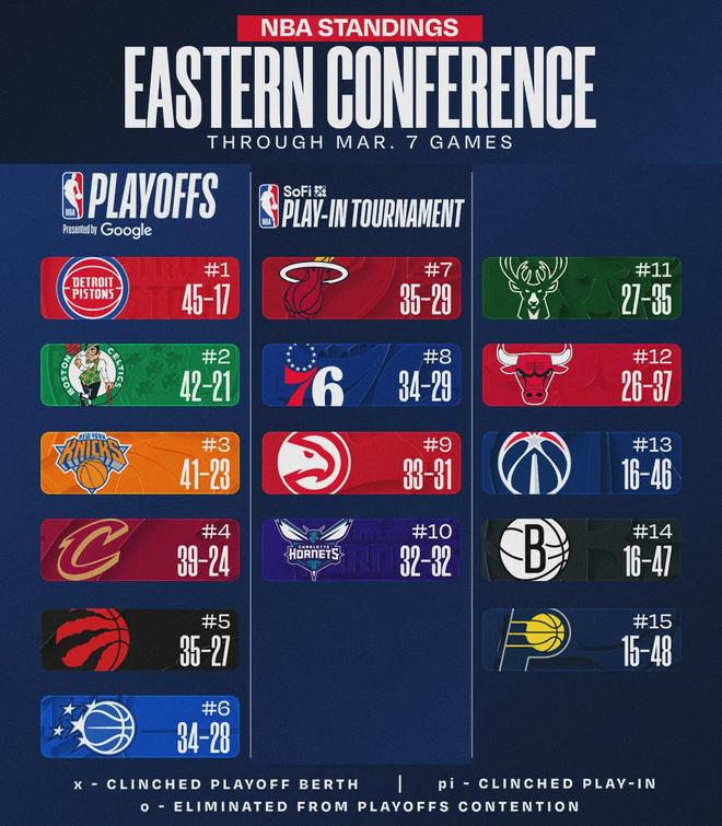 从2月中旬到3月3日,活塞长达三周占据联盟第一的位置。随着此次遭遇3连败,活塞直接从联盟第一变成了第三。今天另外两场比赛:雷霆104-97击败勇士,雷霆成为本赛季首支50胜球队;森林狼92-119惨败魔术,跌至西部第四。