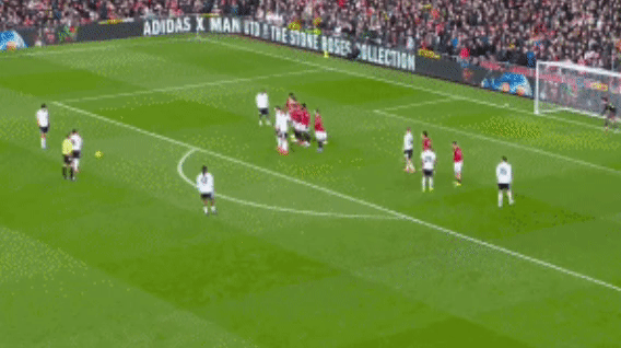 第18分钟,富勒姆后卫卡斯塔涅犯规,经过更改,最终曼联获得任意球:埋伏在后点的卡塞米罗头球破门,曼联1-0领先。