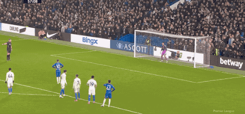第56分钟,桑切斯大脚出球,佩德罗插上来到禁区,比约尔双手推人,这一幕和切尔西的上一场比赛几乎一模一样,佩德罗倒在禁区,裁判判罚点球。