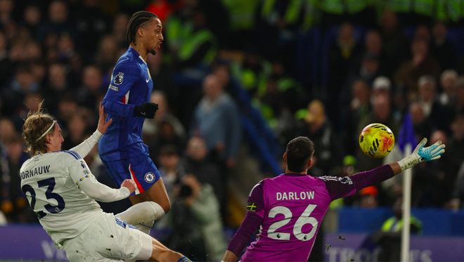 第20分钟,切尔西开出战术任意球,恩佐送出妙传,佩德罗的射门没能踢正部位,达尔洛轻松将球拿到。