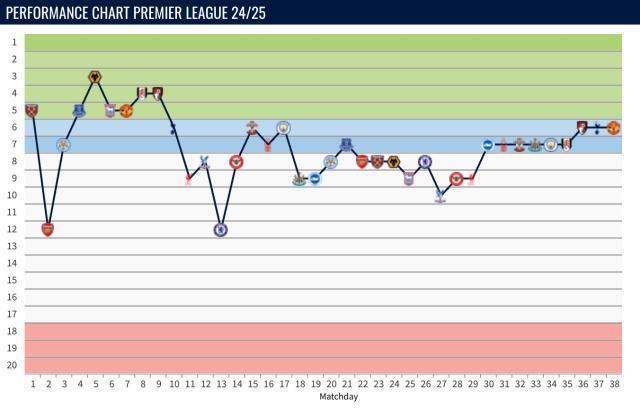 至于英超保五,看官不妨对比一下之前埃梅里执教维拉的两个完整赛季:2024-25赛季欧冠打进8强,维拉的联赛成绩起起伏伏;2023-24赛季欧协打进4强,埃梅里算是比较顺利地达成了前四指标。欧联杯的难度恰好介乎欧冠和欧协之间,这赛季守住前五或者欧联夺冠,都是可以期待的成绩,毕竟,埃梅里是谁?欧联杯之王!